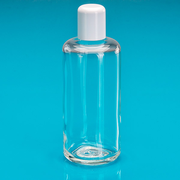 200 ml Flasche klar Glas DIN24, Schraubverschluss weiß einwandig